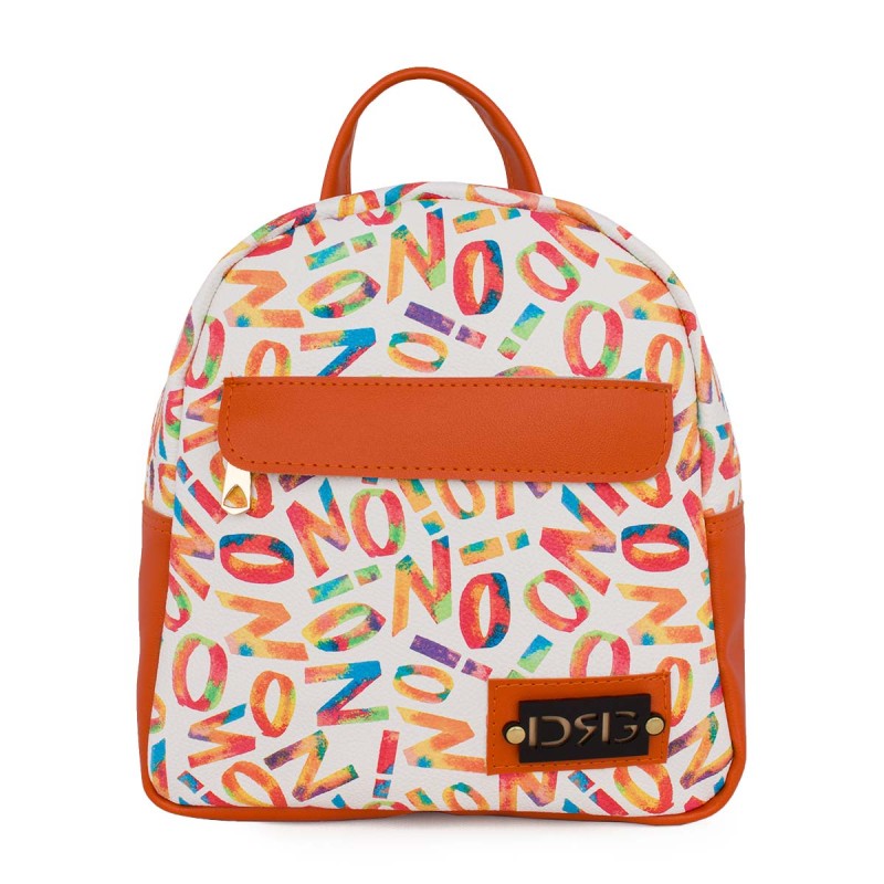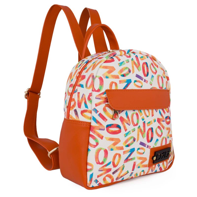 Orange women's backpack made of eco-friendly leather with a leather lining. It features one hidden external zippered pocket at the front, two internal compartments — one with a zipper — and a separate pocket for your phone. The keychain is detachable. Dimensions: H 26cm x W 24cm x D 12cm. The bag is crafted from high-quality, durable materials (synthetic leathers, leather linings, and high-standard PU) carefully selected by our team from exhibitions and factories in both Greece and Italy, ensuring the premium quality every woman desires.*Designed and produced in Greece.** The product comes with a written guarantee.