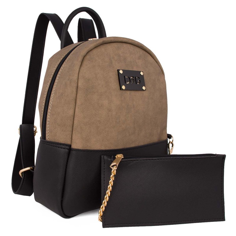 zipper and an outer compartment with a detachable wallet. Adjustable straps. Dimensions: H:34cm L:29cm W:12cm
