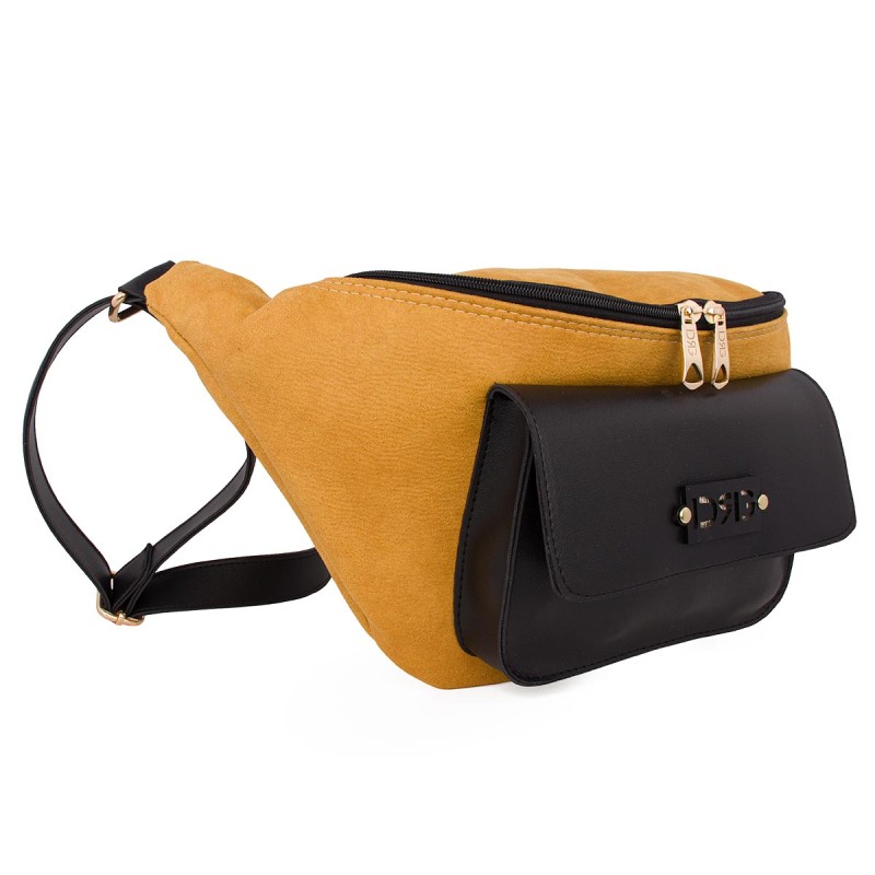 Ocher crossbody bag, made of ecological leather with absorbent and breathable leather lining. It has 2 internal pockets, one with