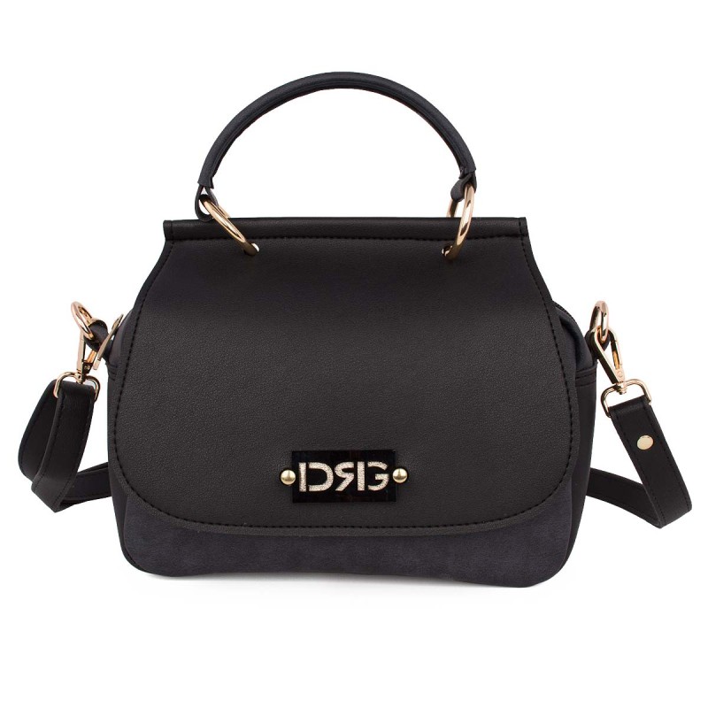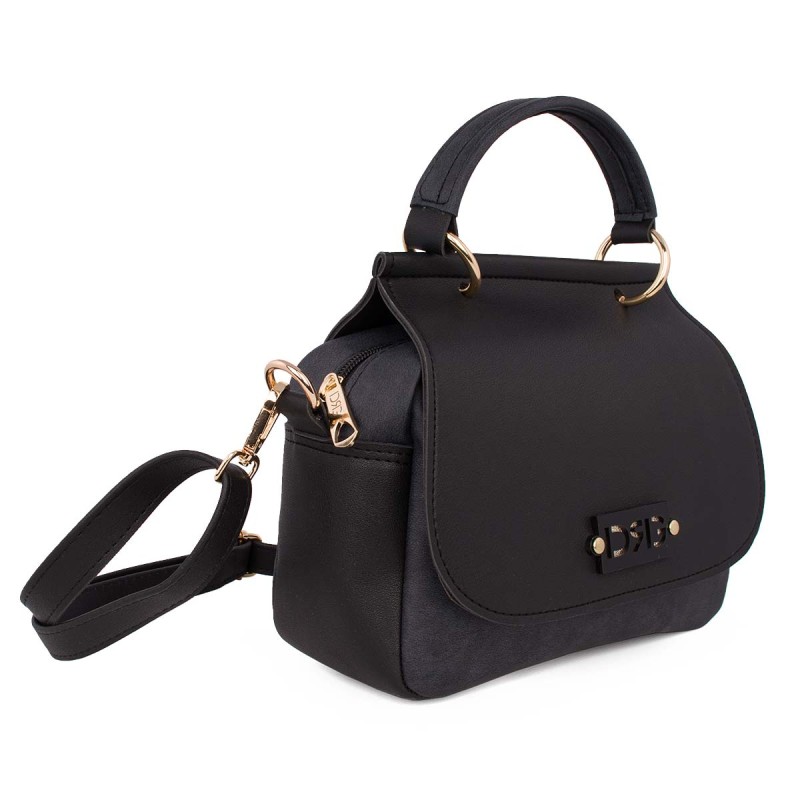Black Crossbody Bag, made from eco-friendly leather with a leather absorbent and breathable lining. It features 1 internal pocket. Closes with a zipper and a flap. Adjustable and removable shoulder strap. Dimensions: H: 18cm, W: 24cm, D: 10cm.