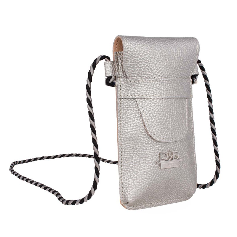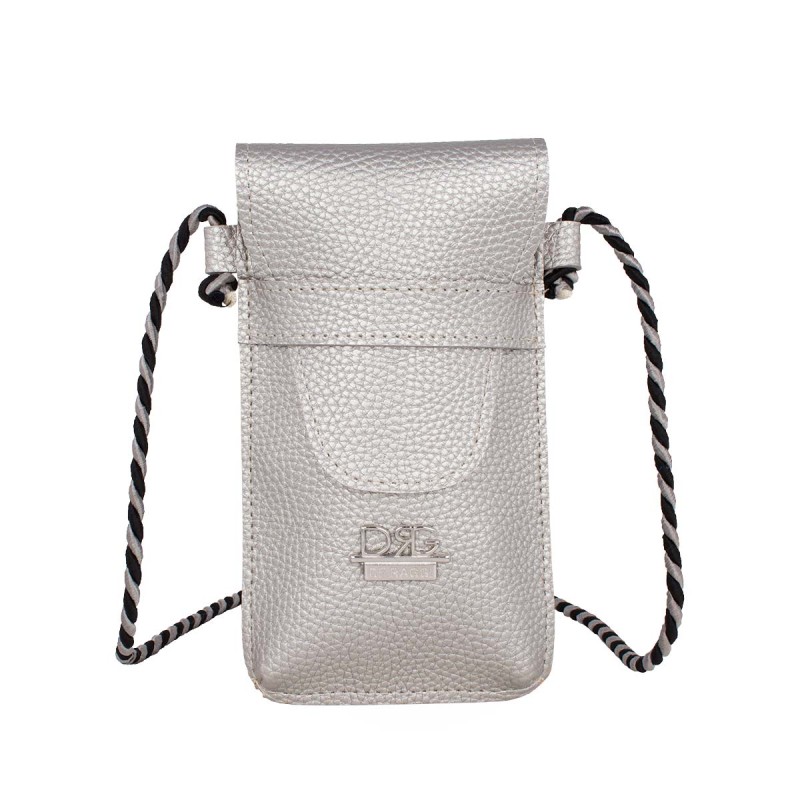 Women's Neck Pouch for Phone & Card in Silver. Made from artificial leather with a velvet lining and an adjustable cord. It features one compartment for your phone and one slot for a card. Dimensions: H 20cm x W 11cm.Crafted from high-quality, durable materials (artificial leather, leather linings, and high-spec PU), carefully selected by our team from exhibitions and factories in Greece and Italy, ensuring the premium quality every woman seeksDesigned and manufactured in Greece.The product comes with a written guarantee.