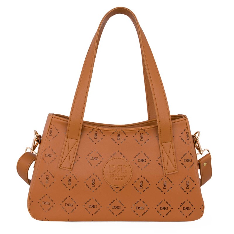 The Tan Women's Shoulder Bag is a stylish and functional accessory. Crafted from Monogram Printed artificial leather with a leather lining, it features two interior compartments, one with a zipper for added security. The bag comes with a detachable, adjustable crossbody strap for versatile wear. Its dimensions are H 22cm x W 36cm x D 14cm, offering both elegance and practicality. Designed and produced in Greece, it is made from high-quality materials carefully selected from exhibitions and factories in Greece and Italy, ensuring the premium quality every woman seeks. The product includes a written guarantee for your confidence.