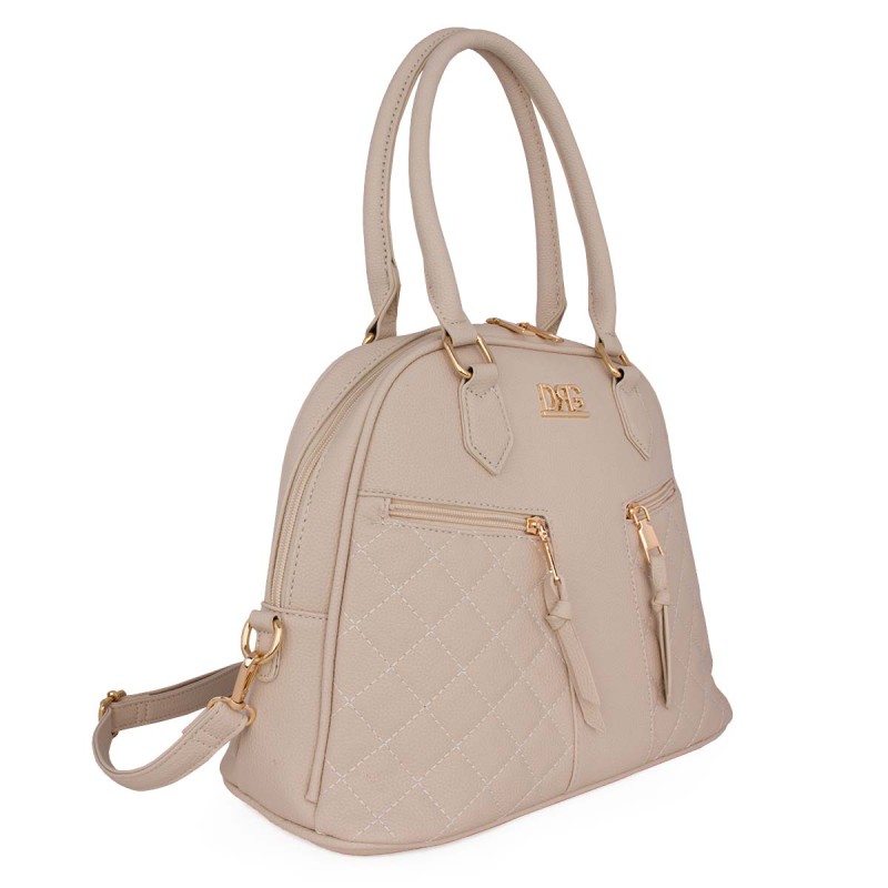 Women's cρεαμ shoulder bag. Made of eco-leather. It features 2 inner compartments, one with a zipper, and 3 outer compartments with zippers on the front and back.Adjustable, detachable crossbody strap. Dimensions: H 28cm, W 36cm, D 12cm. "Designed in Greece exclusively by De Raggi designers".